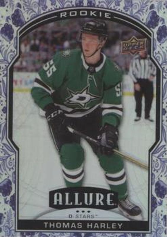 The Thomas Harley 2020 Upper Deck Allure #95 Blue China Rookie card is 1 of 49 Thomas Harley's card variations in the 2020 Upper Deck Allure set being tracked by Sports Card Investor, including #145 Base, #95 Base, #95 2005 Shield, #95 Black Rainbow, and #145 Double Rainbow.