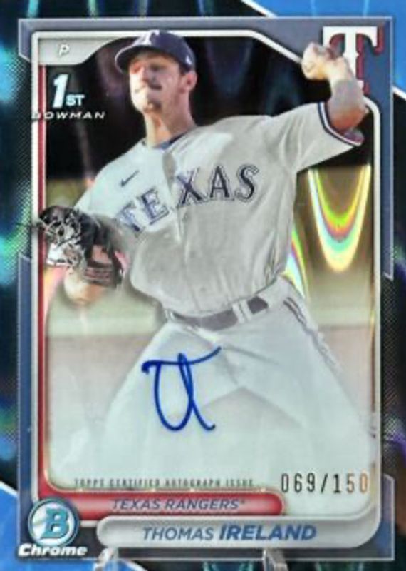 2024 Bowman Chrome Thomas Ireland Auto Blue Raywave Refractor 1st Prospect #/150
