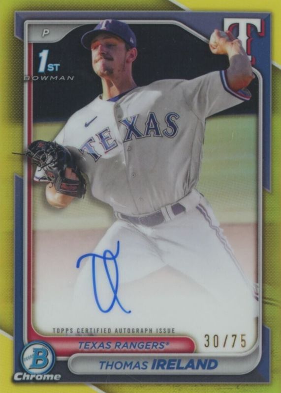 2024 Bowman Chrome Thomas Ireland 1st Yellow Refractor Auto /75 Texas Rangers