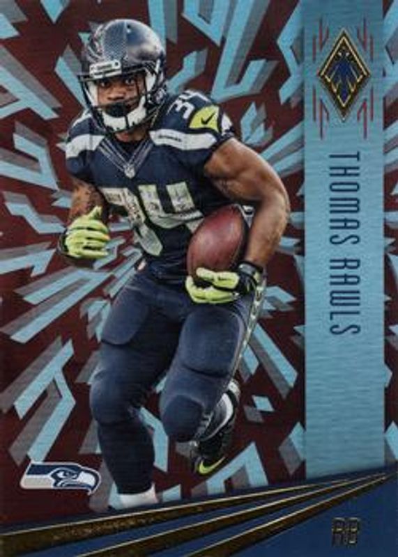 The Thomas Rawls 2016 Phoenix #86 Red card is 1 of 17 Thomas Rawls' card variations in the 2016 Phoenix set being tracked by Sports Card Investor, including Base /249, Pink, Orange /99, Yellow /49, and Green /10.