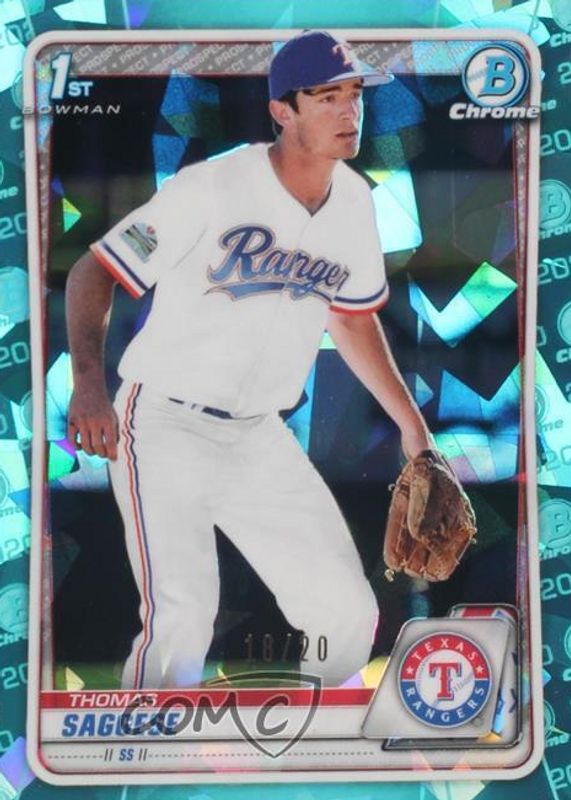 2020 Bowman Chrome Draft Sapphire Thomas Saggese Aqua Refractor #15/20 Rangers