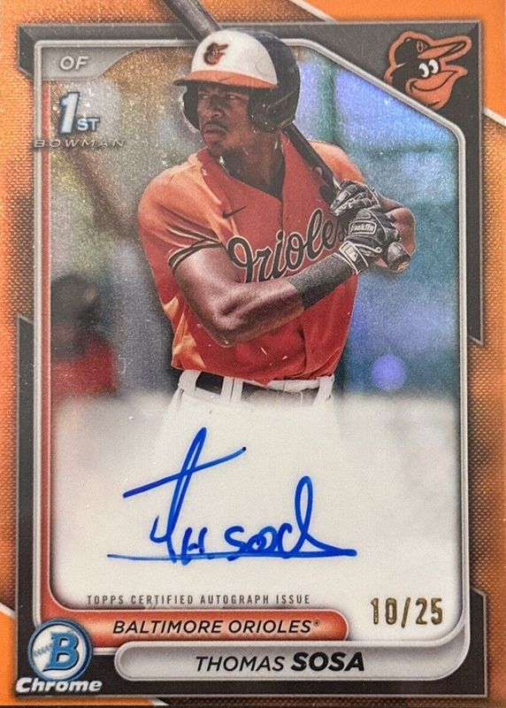 2024 Bowman Chrome Thomas Sosa Orange Refractor 1st Auto #10/25 Orioles