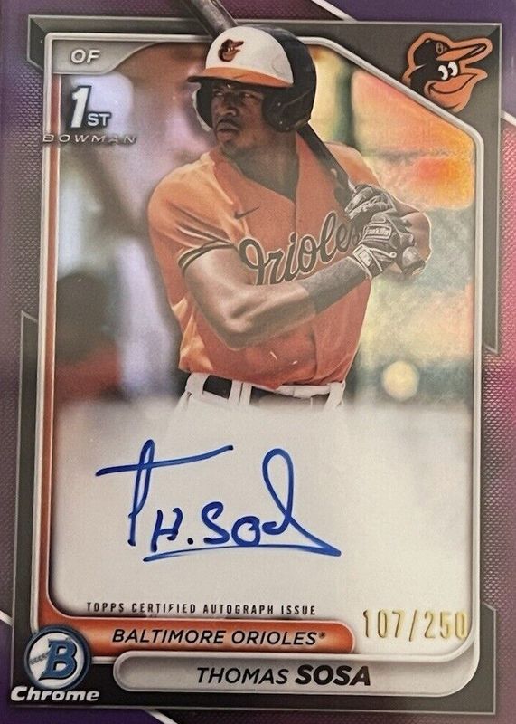 2024 Bowman Chrome THOMAS SOSA RC 1st Auto Purple Refractor /250 Orioles JK316