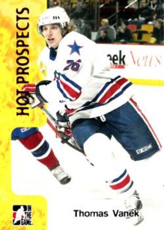 The Thomas Vanek 2005 In The Game Heroes & Prospects #369 Base Rookie card is 1 of 22 Thomas Vanek's card variations in the 2005 In The Game Heroes & Prospects set being tracked by Sports Card Investor, including Base, Autographs, Autographs Memorabilia, Autographs Memorabilia Gold, and Autographs Series II.