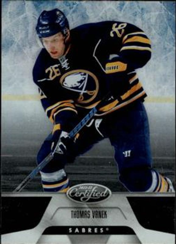 The Thomas Vanek 2011 Certified #51 Base /499 card is 1 of 33 Thomas Vanek's card variations in the 2011 Certified set being tracked by Sports Card Investor, including Totally Silver, Mirror Red /199, Mirror Red Materials Dual /150, Mirror Blue /99, and Mirror Blue Materials /99.