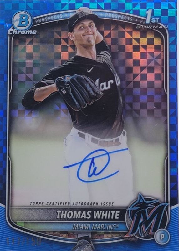 2025 Bowman Thomas White 1st Prospect Chrome Auto BLUE X-FRACTOR #/150 Marlins