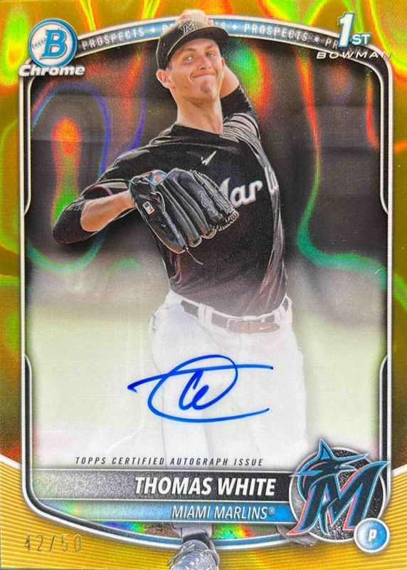 2025 Bowman - Thomas White- 1st Bowman- Chrome Gold Lava Refractor Auto - /50!