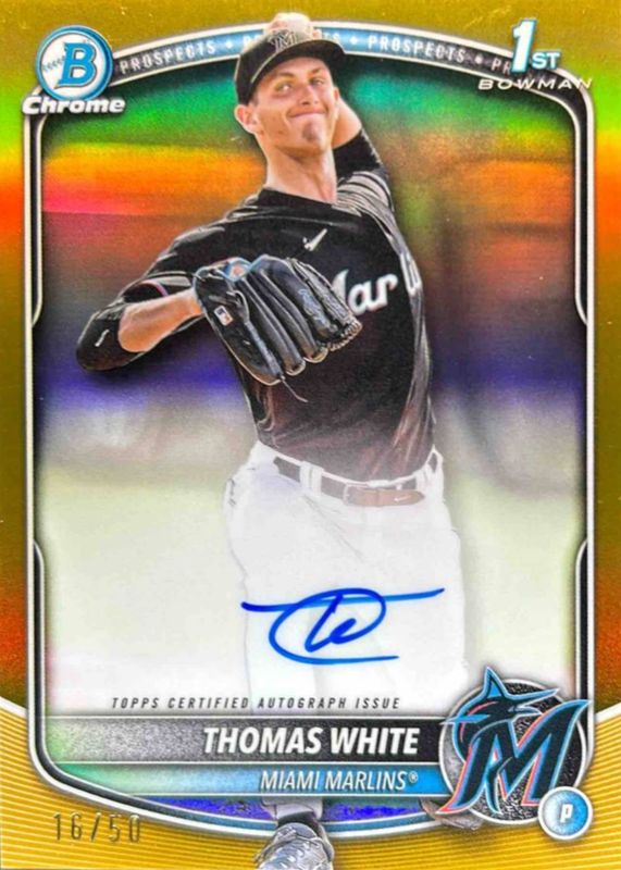 2025 Bowman Thomas White Chrome Auto Gold Refractor 1st #40/50 Marlins