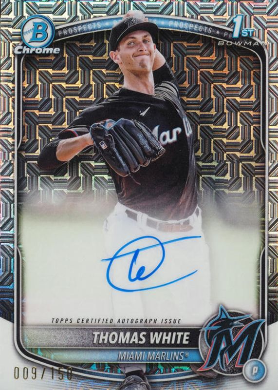 2025 Bowman Chrome Prospects Thomas White /150 HTA Auto Miami Marlins 1st Bowman