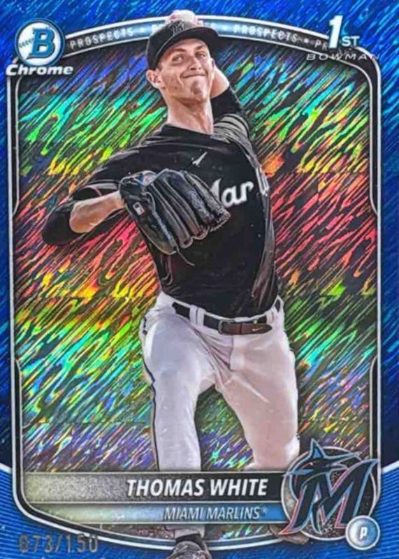 2025 Bowman Chrome Thomas White 1st Blue Shimmer Refractor #’d/150 Miami Marlins