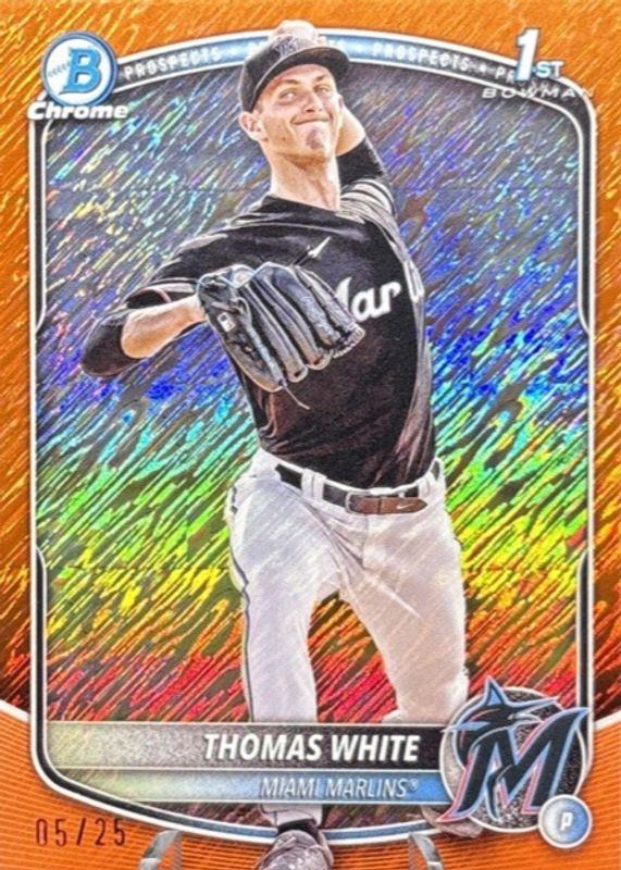 2025 Bowman Chrome 1st Thomas White - Orange Shimmer Refractor /25 Marlins