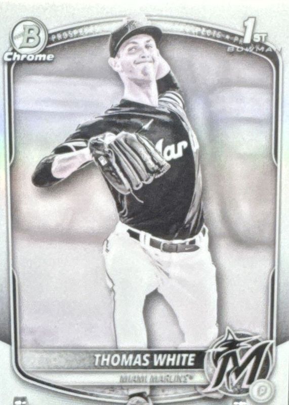 The Thomas White 2025 Bowman #BCP-69 Chrome Prospects - Pearl Refractor (1st) card in Raw condition has not changed in price in the last 30 days and was last sold for $24.99 .