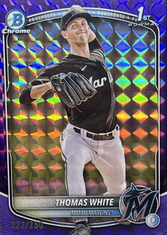 Thomas White 2025 Bowman #BCP-69 Chrome Prospects - Purple Geometric Refractor /250 (1st) RAW Price Guide