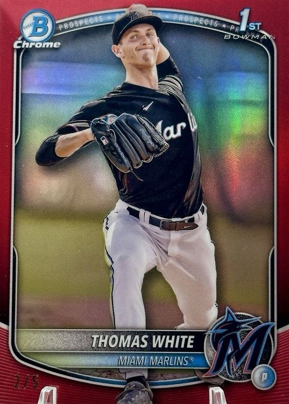 Thomas White 2025 Bowman #BCP-69 Chrome Prospects - Red Refractor /5 (1st) RAW Price Guide