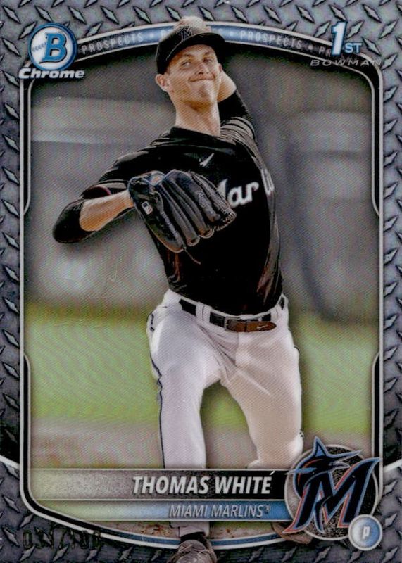 2025 Bowman Thomas White Chrome Refractor Steel Metal 1st #/100 Marlins