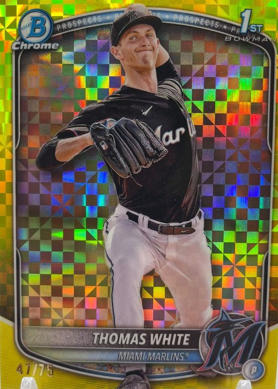 2025 Bowman Chrome Thomas White BCP-69 Yellow Geometric Refractor /75 Marlins 🔥