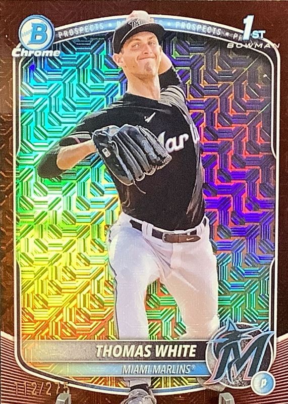 2025 Bowman Chrome MOJO 1st Thomas White Burgundy /275 Miami Marlins RC
