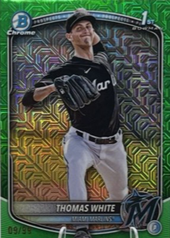 Thomas White 2025 1st Bowman Chrome #BCP-69 Green Mojo Refractor /99 Marlins