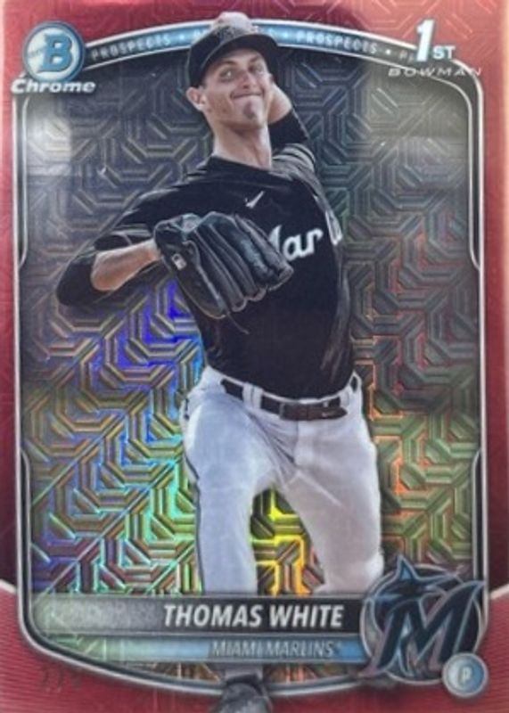Thomas White 2025 Bowman Mega Box #BCP-69 Chrome Prospects - Red Refractor /5 (1st) RAW Price Guide
