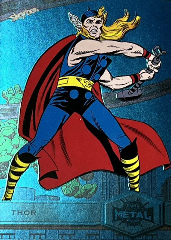 This card is 1 of 19 Thor's card variations in the 2021 Skybox Marvel Metal Universe Spider-Man set being tracked by Sports Card Investor, including Grandiose, Grandiose (High Series), Light FX Gold, Light FX Gold (High Series), and Light FX Yellow.