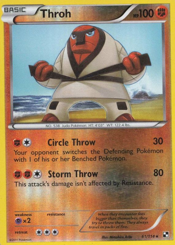 2011 Pokemon, Black & White, #61/114 Throh, Reverse Holo Rare