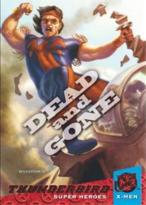The Thunderbird 2018 Fleer Ultra X-Men #DG2 Dead & Gone card is 1 of 12 Thunderbird's card variations in the 2018 Fleer Ultra X-Men set being tracked by Sports Card Investor, including Base, Rainbow Foil, Silver Foil, Gold Foil /99, and Red Foil Artist Autographs /50.