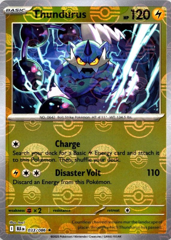 Pokémon Black Bolt Thundurus 033/086 (Pokeball Pattern) Holo NM