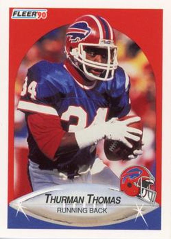 The Thurman Thomas 1990 Fleer #124a Base card is 1 of 2 Thurman Thomas' card variations in the 1990 Fleer set being tracked by Sports Card Investor, including Base.