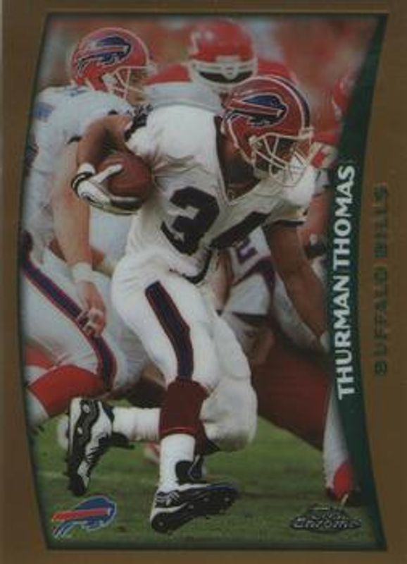 The Thurman Thomas 1998 Topps Chrome #92 Base card is 1 of 2 Thurman Thomas' card variations in the 1998 Topps Chrome set being tracked by Sports Card Investor, including Refractor.