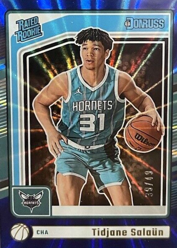 Tidjane Salaun 2024-25 Panini Donruss Rated Rookie Holo Blue Laser 24/49 RC #229