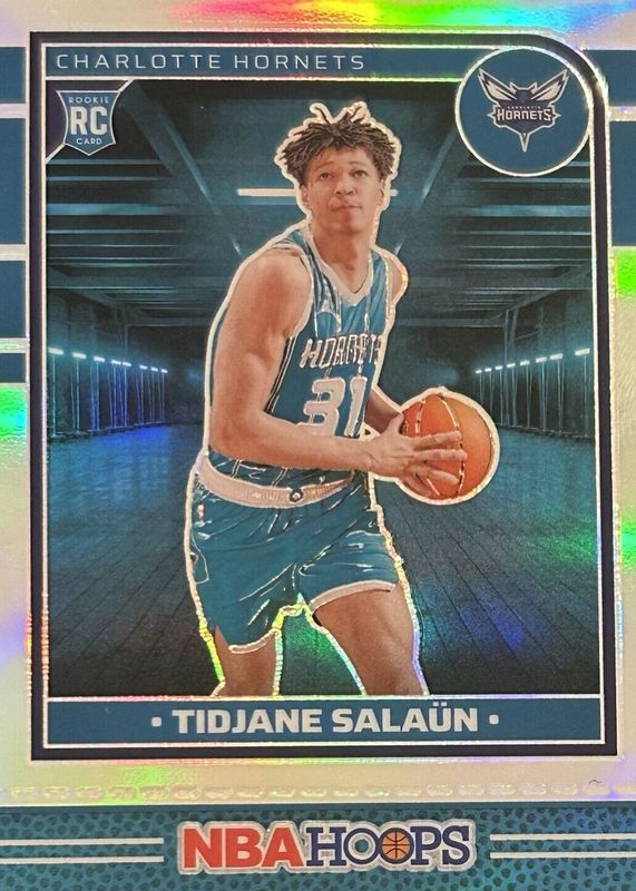 This card is 1 of 116 Tidjane Salaun's card variations in the 2024 Hoops set being tracked by Sports Card Investor, including Base, Tribute, Blue, Impulse, and Premium.