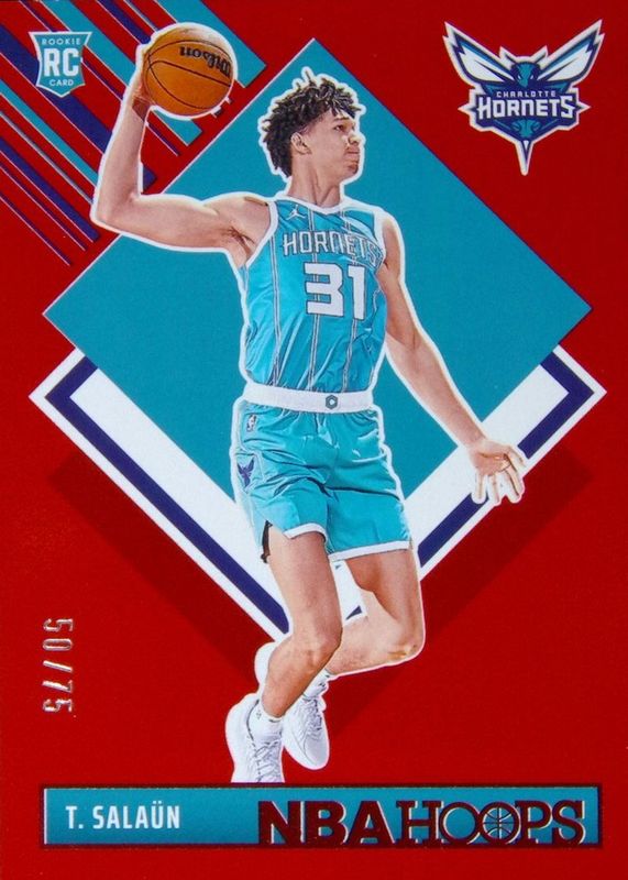 This card is 1 of 116 Tidjane Salaun's card variations in the 2024 Hoops set being tracked by Sports Card Investor, including Base, Tribute, Blue, Impulse, and Premium.