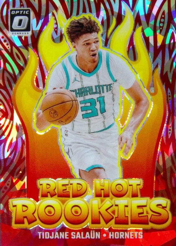 The Tidjane Salaun 2024 Optic #5 Red Hot Rookies - Cracked Ice /25 card in Raw condition has not changed in price in the last 30 days and was last sold for $3.25 .