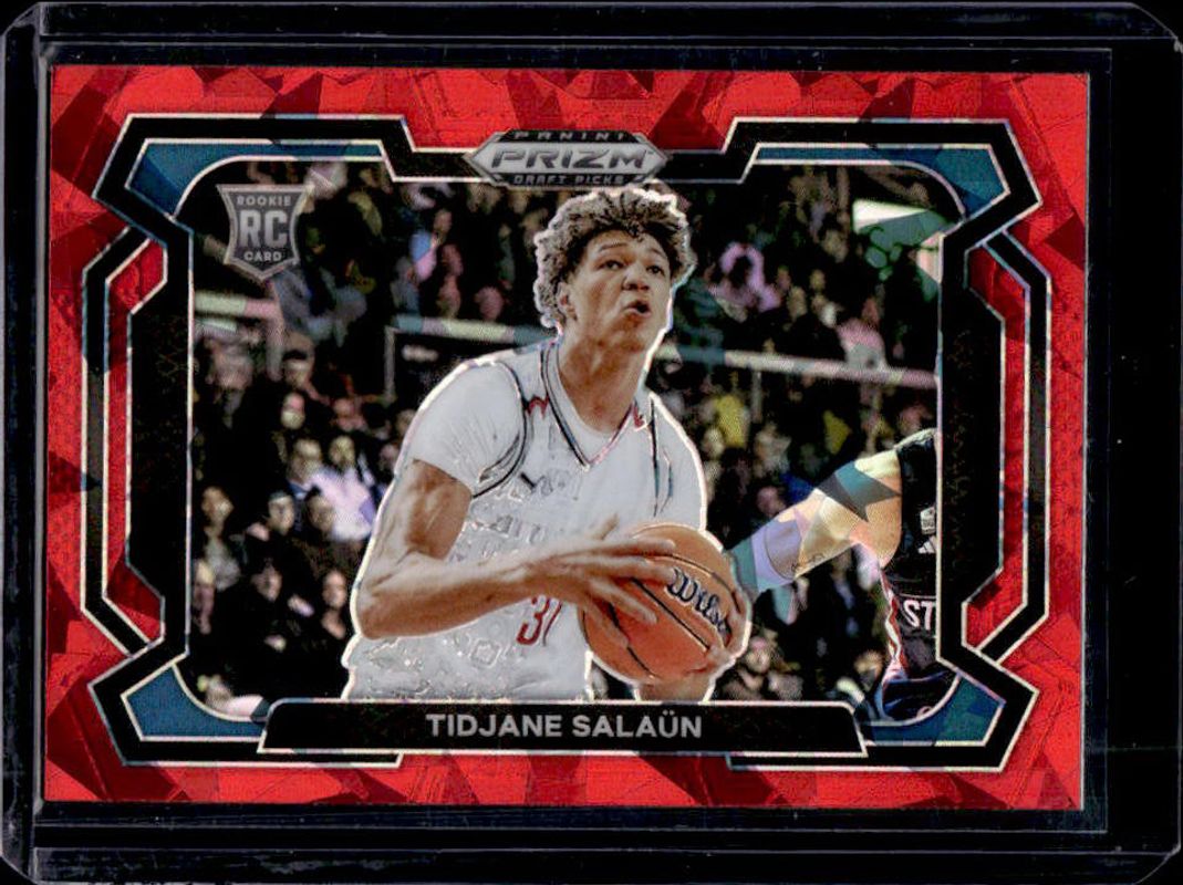 The Tidjane Salaun 2024 Prizm Draft Picks #82b Red Ice Rookie card is 1 of 130 Tidjane Salaun's card variations in the 2024 Prizm Draft Picks set being tracked by Sports Card Investor, including #82b Base, #82 Base, #82b Green, #82 Green, and #82 Green Wave.