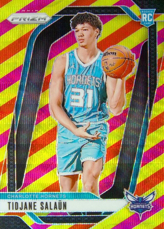 The Tidjane Salaun 2024 Prizm #262 Multi Wave /88 Rookie card in Raw condition has moved down -$0.40 (-3.8%) in the last 30 days and was last sold for $10.00 .