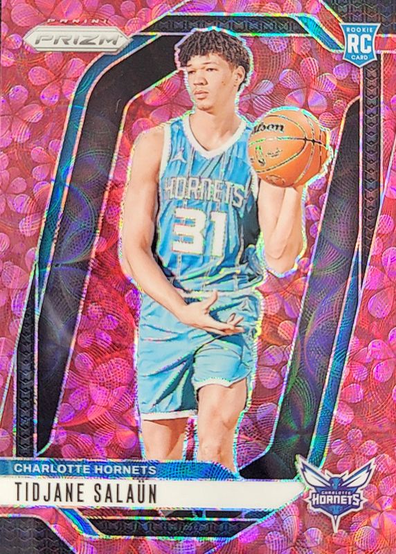 The Tidjane Salaun 2024 Prizm #262 Plum Blossom /8 Rookie card in Raw condition has not changed in price in the last 30 days and was last sold for $129.50 .