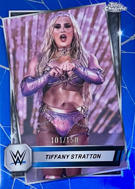 Best Prices Available For Sale of Tiffany Stratton 2025 Topps Chrome WWE #182 Blue Refractor /150
