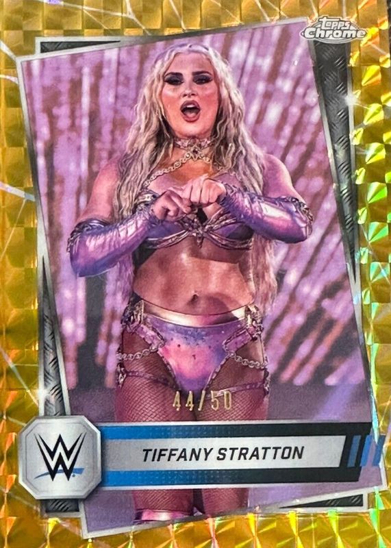 Tiffany Stratton 2025 Topps Chrome WWE #182 GOLD GEOMETRIC REFRACTOR /50