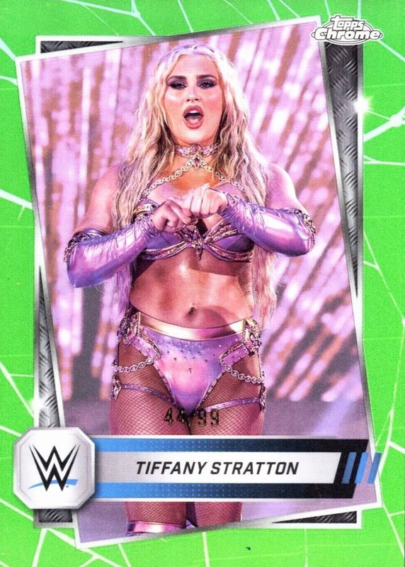 2025 Topps Chrome WWE Green Refractors #182 Tiffany Stratton 44/99
