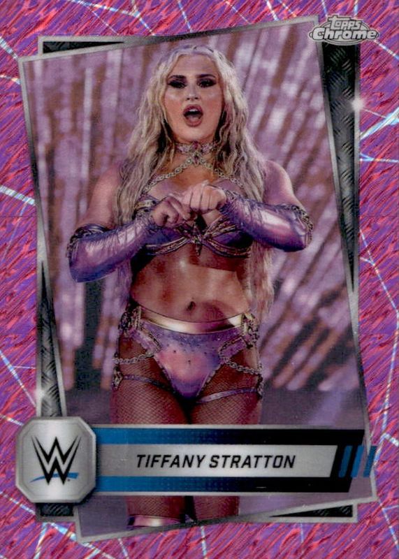 Best Prices Available For Sale of Tiffany Stratton 2025 Topps Chrome WWE #182 Pink Shimmer Refractor