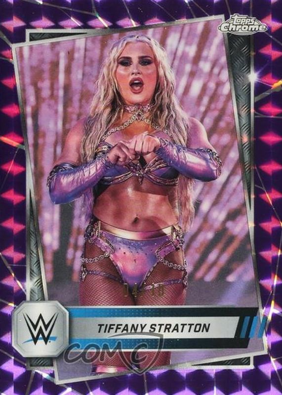 Tiffany Stratton 2025 Topps Chrome WWE #182 Purple Geometric Refractor /10 RAW Price Guide