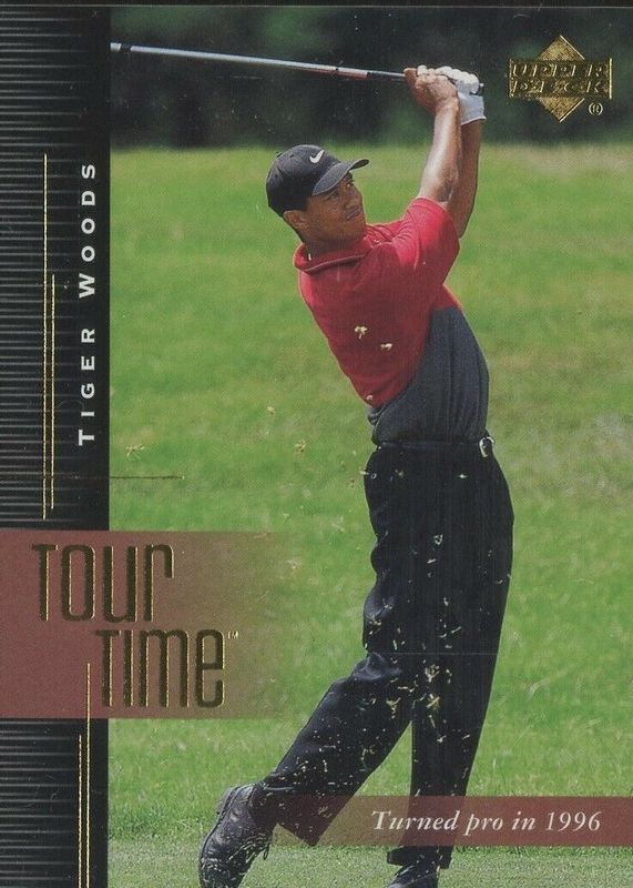 The Tiger Woods 2001 Upper Deck #176 Tour Time Rookie card is currently the 9th most trending card in Golf.