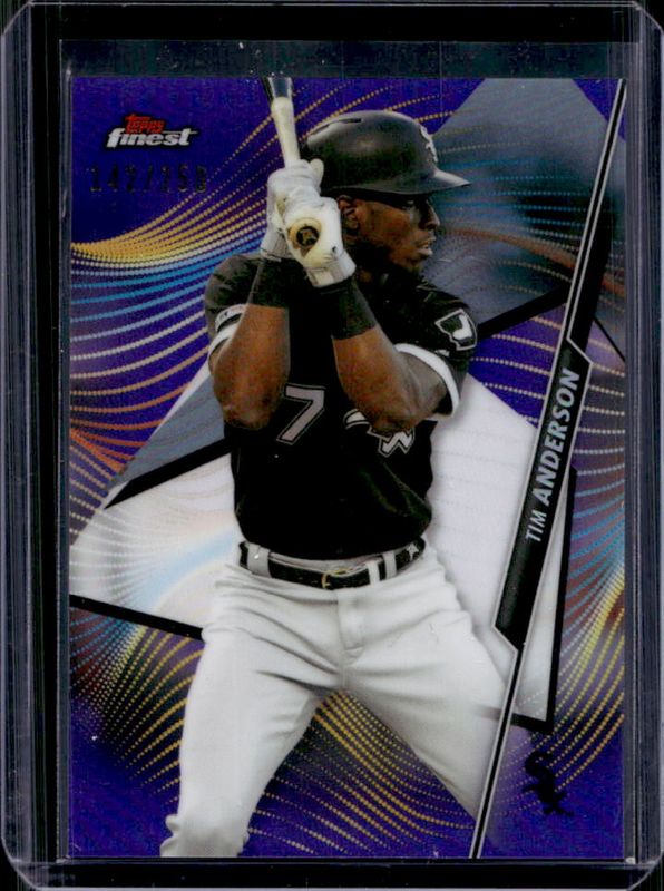 The Tim Anderson 2020 Topps Finest #18 Purple Refractor /250 card is 1 of 27 Tim Anderson's card variations in the 2020 Topps Finest set being tracked by Sports Card Investor, including Base, Refractor, Blue Refractor /150, Green Refractor /99, and Gold Refractor /50.