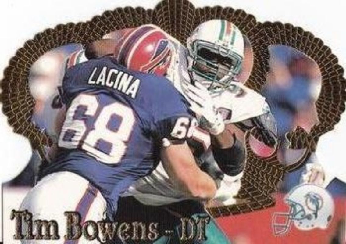 The Tim Bowens 1995 Pacific Crown Royale #35 Base card is 1 of 3 Tim Bowens' card variations in the 1995 Pacific Crown Royale set being tracked by Sports Card Investor, including Blue Holofoil, and Copper.