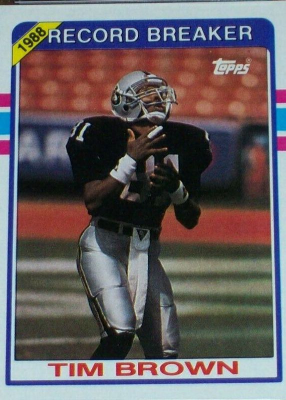 Tim Brown's Football cards are available in at least 255 sets. Tim Brown's biggest 7-day price movers are 1989 Topps #2 Record Breaker, 1997 Action Packed Flagship #80 First Impressions, and 1997 Action Packed Flagship #80 Extra Points Metal Die Prizes /1.
