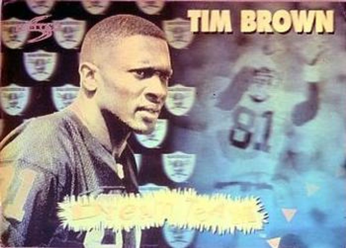 The Tim Brown 1994 Score #DT4 Dream Team card is 1 of 3 Tim Brown's card variations in the 1994 Score set being tracked by Sports Card Investor, including Base, and Gold Zone.