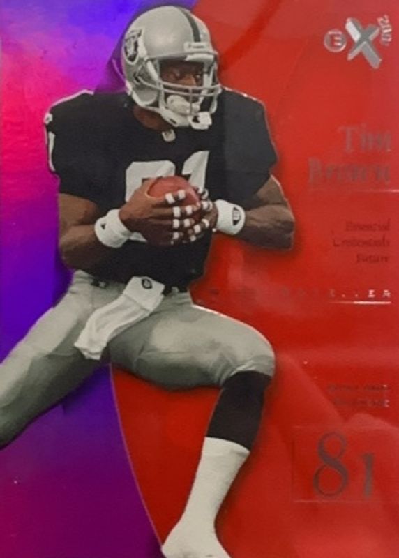 This card is 1 of 2 Tim Brown's card variations in the 1998 Skybox E-X2001 set being tracked by Sports Card Investor, including Essential Credentials Now (/33).