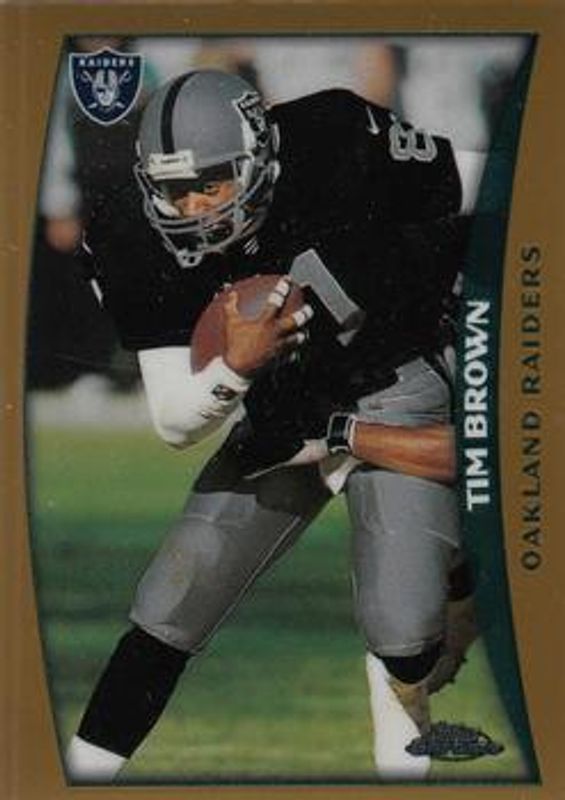 The Tim Brown 1998 Topps Chrome #132 Base card is 1 of 6 Tim Brown's card variations in the 1998 Topps Chrome set being tracked by Sports Card Investor, including Refractor, Measures of Greatness, Measures of Greatness - Refractor, Season's Best, and Season's Best - Refractor.