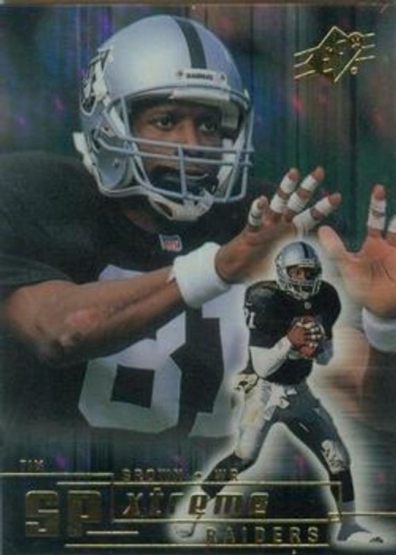 The Tim Brown 1999 SPx #X17 SPxtreme card is 1 of 4 Tim Brown's card variations in the 1999 SPx set being tracked by Sports Card Investor, including Base /1999, Radiance /100, and Spectrum /1.
