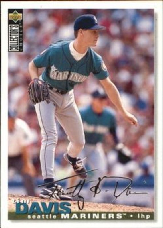 The Tim Davis 1995 Upper Deck Collector's Choice #281 Silver Signatures card is 1 of 3 Tim Davis' card variations in the 1995 Upper Deck Collector's Choice set being tracked by Sports Card Investor, including Base, and Gold Signatures.